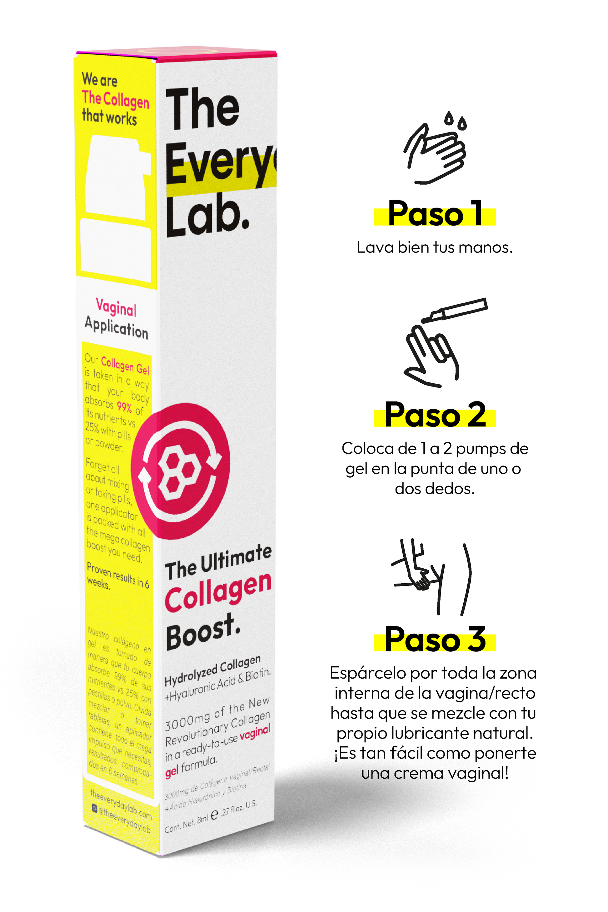 Me encanta este colágeno, voy por mi tercer kit. Yo creo que funciona mejor usando ambos, el oral y el vaginal. Siento la piel divina, con otros colágenos en polvo no me pasó lo mismo y me caían pesados.